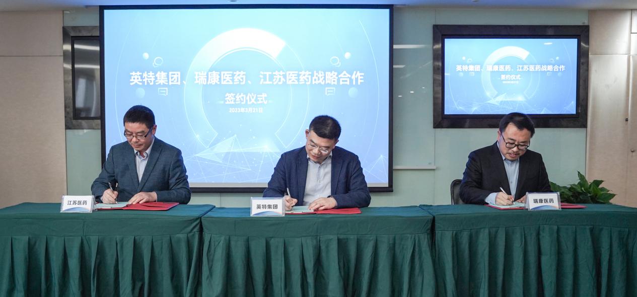 簽約儀式上,英特集團(tuán)董事長(zhǎng)應(yīng)徐頡、瑞康醫(yī)藥副總經(jīng)理?xiàng)畈⒔K醫(yī)藥總經(jīng)理陳冬寧分別代表各方簽署戰(zhàn)略合作協(xié)議。