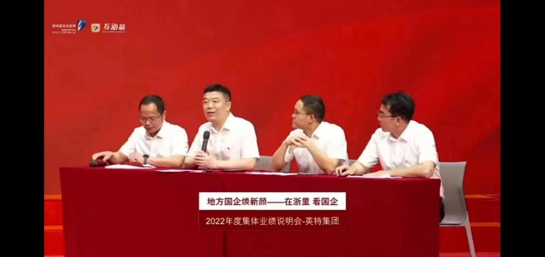 5月17日,深圳證券交易所上市大廳,浙江省國資委聯(lián)合深圳證券交易所共同舉行“地方國企煥新顏——在浙里 看國企”浙江國有控股上市公司2022年度集體業(yè)績說明會暨“走進深交所”活動。浙江省國資委黨委委員、副主任顧濤出席活動并致辭。英特集團作為5家在深交所掛牌的浙江國有控股上市公司代表之一,作業(yè)績說明并集中回答了投資者提問。公司黨委書記、董事長應(yīng)徐頡,黨委委員、董事、副總經(jīng)理費榮富,獨立董事陳昊(線上),董事會秘書譚江,財務(wù)負責人曹德智參加了本次業(yè)績說明會。