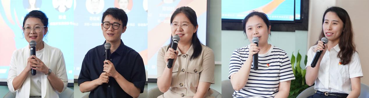 “共成長 賦先行”主題圓桌對話環(huán)節(jié),特邀省國貿(mào)集團團委書記陳金、浙大一院團委書記蘇俊威、康恩貝股份團委書記田楊、省健康產(chǎn)業(yè)集團團委書記葉小莉及英特青年代表陳婉紗進行對話交流。五位青年結合崗位實際和個人經(jīng)歷,圍繞時代背景、行業(yè)使命、公司平臺、創(chuàng)新創(chuàng)效、青年形象等角度暢談工作體會,分享感悟心聲,共話使命擔當。交流中金句頻出,充分展現(xiàn)了青年干部朝氣蓬勃、奮發(fā)進取的精神風貌。